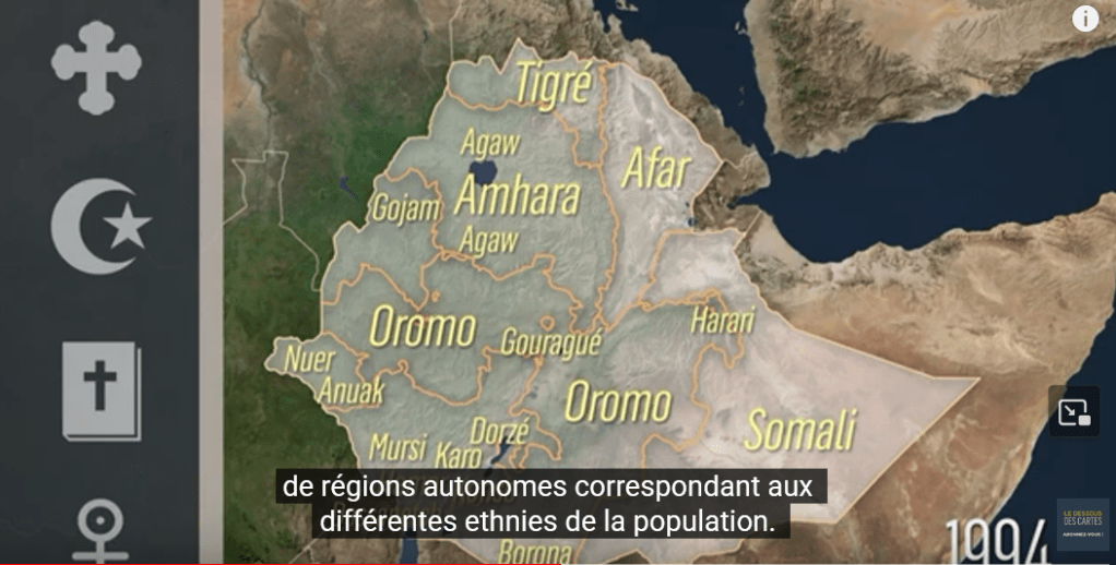 « Depuis l’entrée en vigueur de la constitution de 1994, l’Éthiopie est un État fédéral divisé en régions — parfois appelées États — établies sur des bases ethniques.